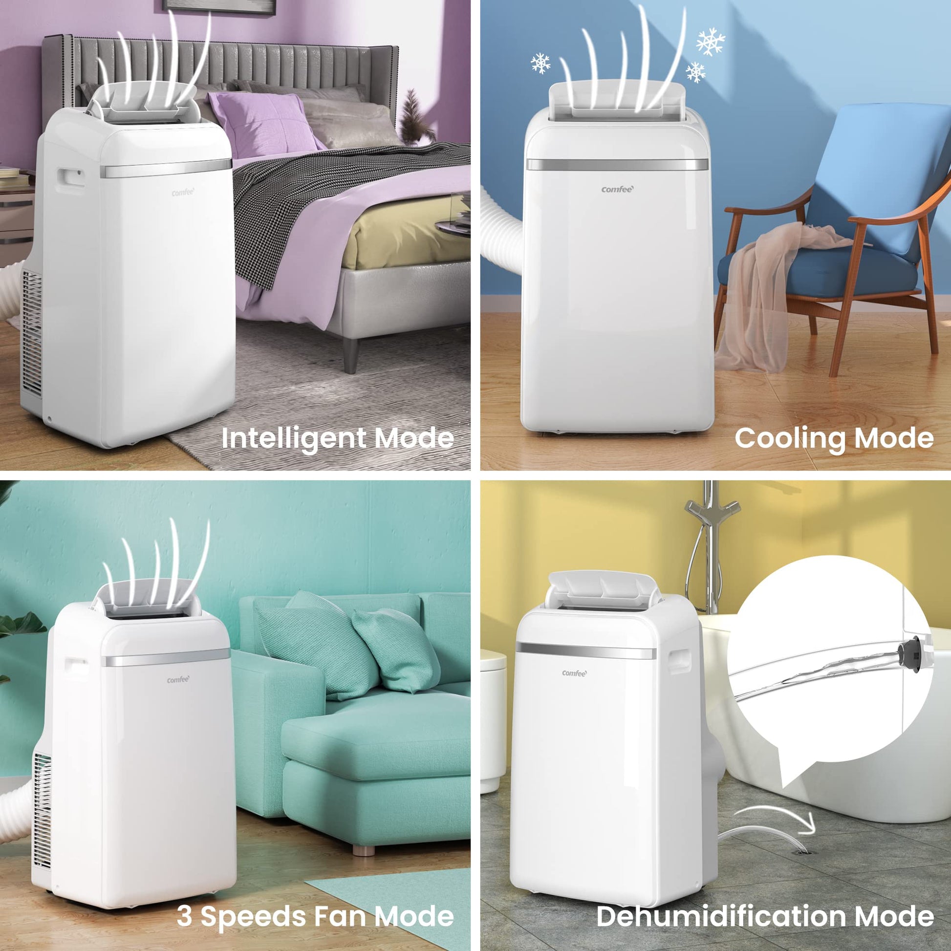 - Comfee Mobiles Klimagerät Pro: 3-in-1 Klimaanlage mit Abluftschlauch, KühlenundEntfeuchtenundVentilieren, 10000 BTU, 2. 9kW, für Räume ca. 98m³(36㎡)