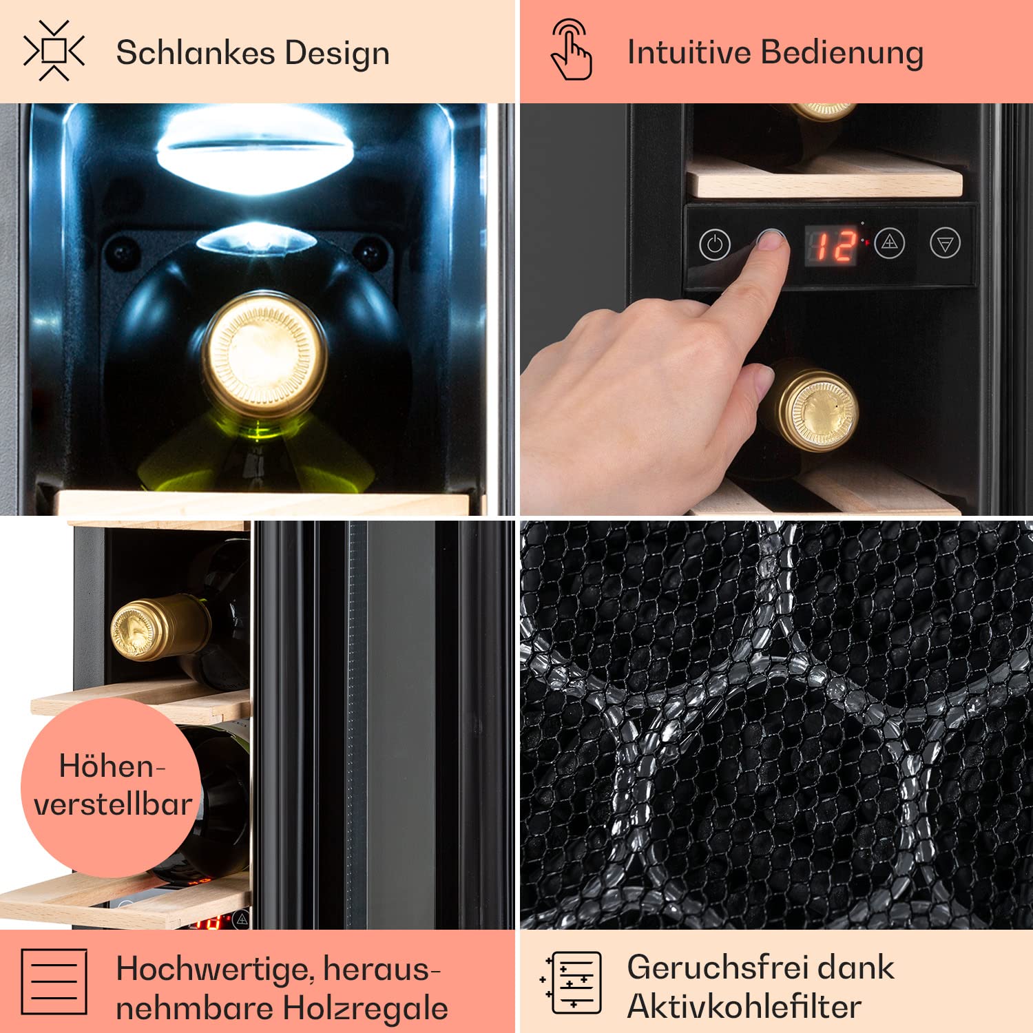 - EINFACHE, ELEGANTE BEDIENUNG: Über das Touch-Bedienfeld mit LCD-Display kannst du die Temperatur anpassen, damit jeder Wein auf die perfekte Temperatur eingestellt ist. Der Weinschrank mit Glastür ist klein und dennoch verfügt er über genügend Platz.